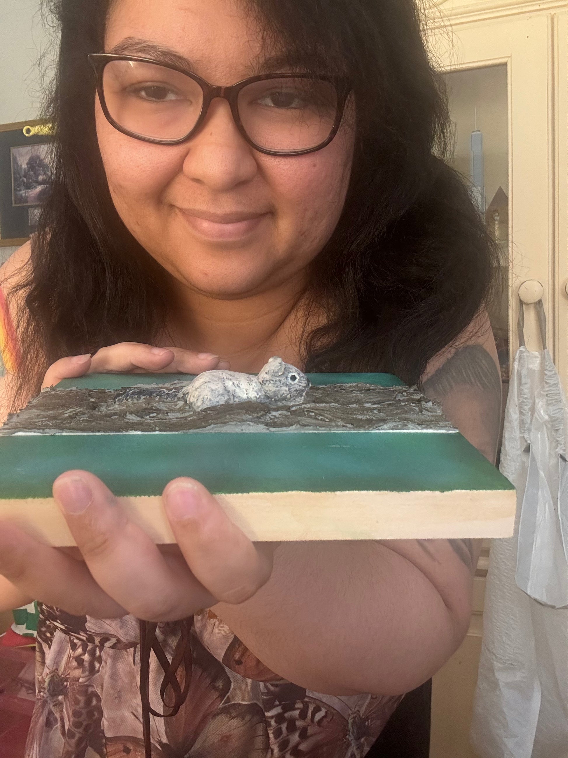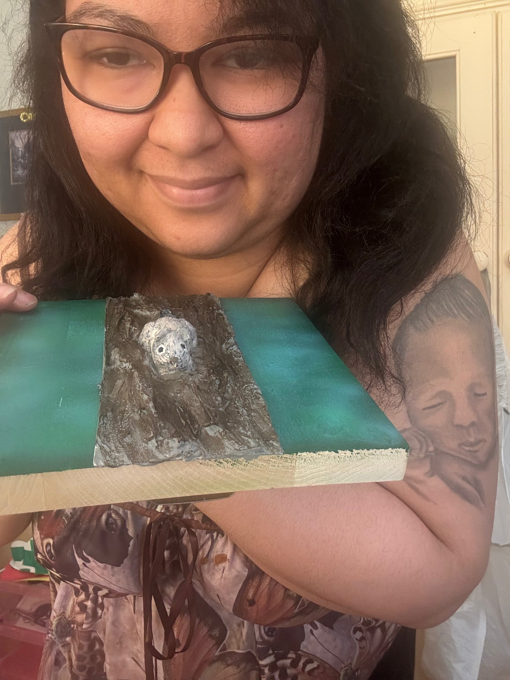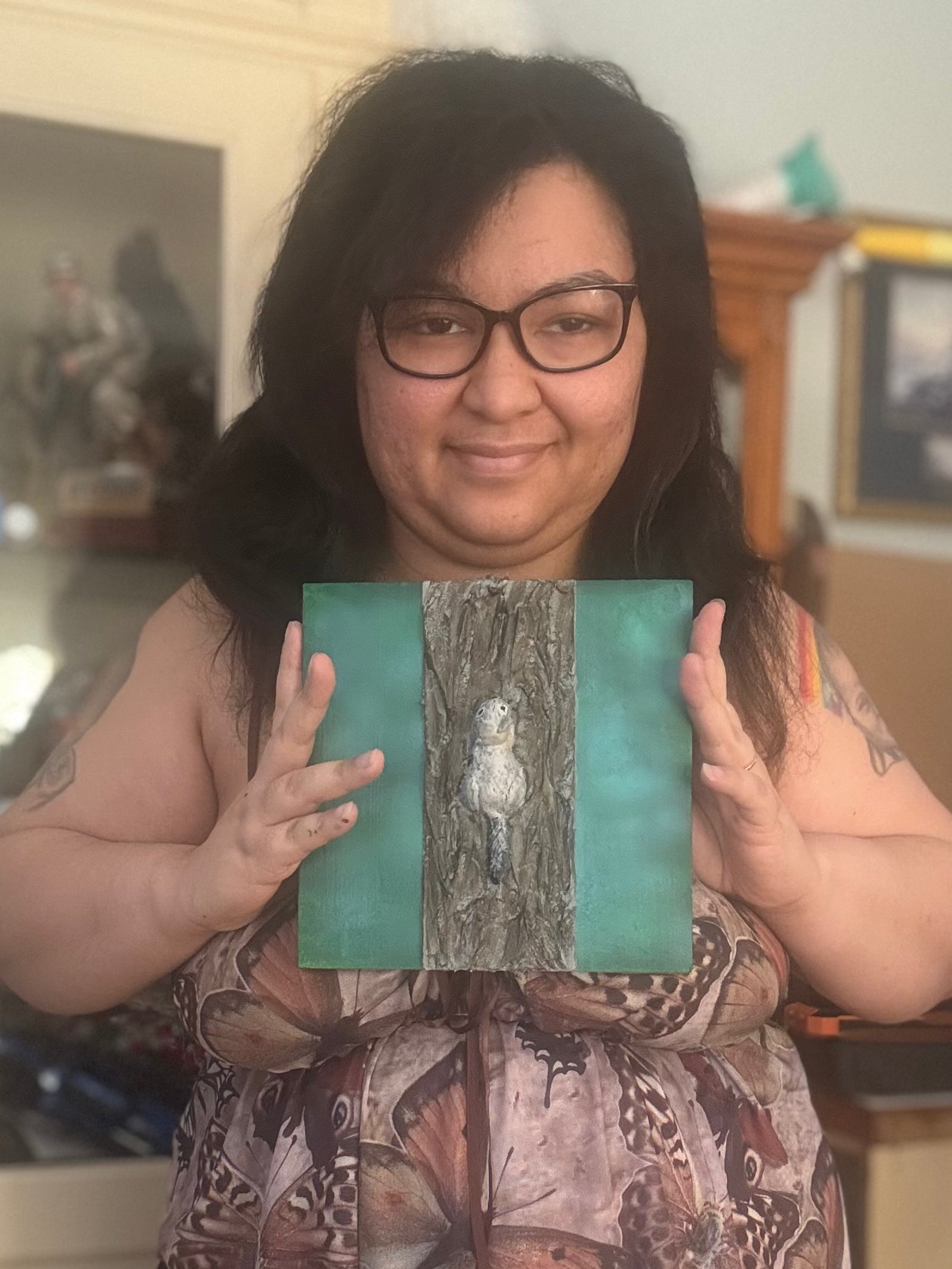 Medium: acrylic paint, molding paste, and polymer clay on wood